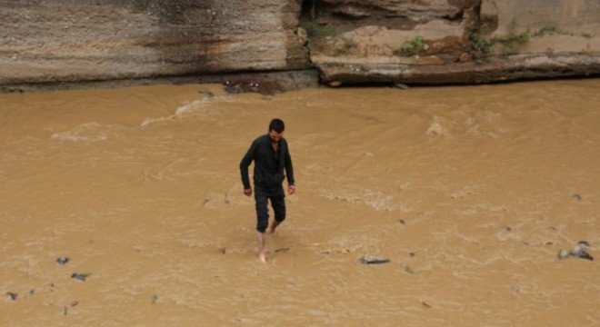 Oltu Çayı’na girdi, can kurtardı