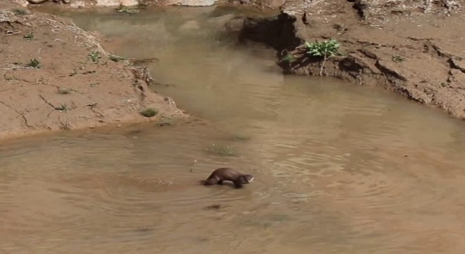 Nesli tehdt altındaki su samuru, Erzurum'un Olur ilçesi Ormanağzı köyünde görüntülendi.