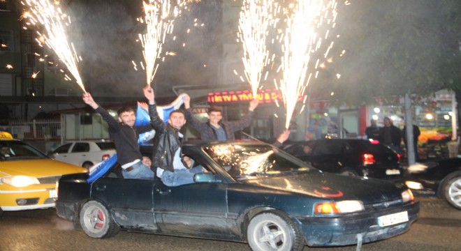 Oltulular sahura kadar yüzlerce araçlarla korna çalarak dolaştılar, meşaleler yaktılar, kamyon önünde bayrak açarak turladılar.