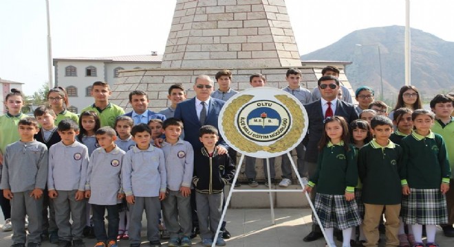 Oltu Yasin Haşimoğlu İlkokulu tarafından düzenlenen kutlama programı öncesi Atatürk Anıtı’na çelenk konulmasının ardından saygı duruşu ve İstiklal Marşı okundu.
