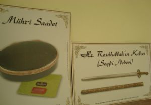 Kurs Yöneticisi Tuba Ömürlü Yıldız, “Sergide; Efendimizin yayı, kılıcı, sancağı, Hırka-i Saadet-i, ayak izi, teyemmüm taşı, kabir toprağı ve Nal-i Saadeti ayrıca Hz. Fatıma annemizin sandığı, seccadesi, duvağı ile Hz. Hüseyin’ in hırkası ve Hz. Aişe annemizin örtüsü de bulunuyor. 'Kutsal Emanetler' konulu fotoğraf sergisi gönüllerde unutulmaz anılar bırakacağına inanıyorum.” şeklinde konuştu.