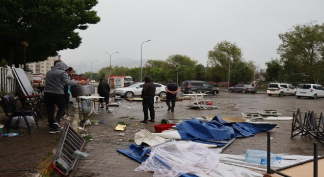 Erzurum’un Oltu ilçesinde bugün saat 14.00 sıralarında aniden çıkan şiddetli fırtına hayır çarşısı için kurulan çadırı uçurdu bazı işyerlerinin camı kırıldı. Yaklaşık 15 dakika süren şiddetli rüzgarın ardından sağanak yağmur etkili oldu. Fırtına sonrası ilçede bir saat enerji kesitlisi yaşanırken park bahçelerde cam masalar kırıldı.