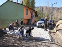Oltu Kaymakamlığı Köylere Hizmet Götürme Birliği tarafından köylere verilen parke taşı köylüler tarafından döşeniyor