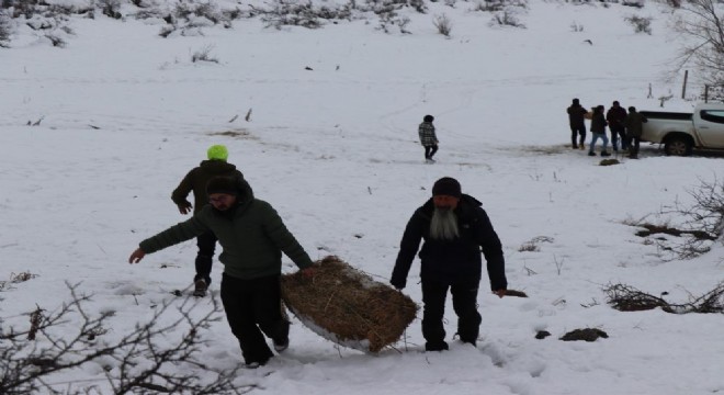 Oltu ilçesinde doğaseverler yaban hayatına destek olmak için doğaya ot ve buğday bıraktı.