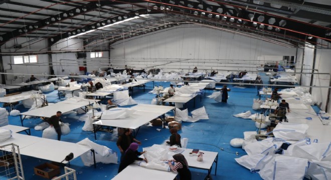 Oltu ilçesinde açılan çuval fabrikası yüzlerce kişiye iş kapısı olmaya devam ediyor.