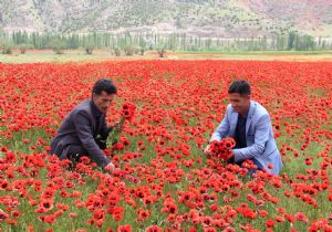 Dutlu Köyü sakinleri hiçbir yıl bu kadar gelinciğin çiçek açmadığını dile getirirken köyün merasında açan milyonlarca gelincik araziyi adeta kırmızıya bürüdü.