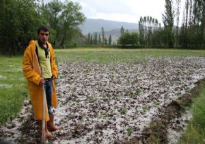 Oltu ilçesinde ceviz büyüklüğünde yağan dolu, araçlara ve ekili tarım arazilerine zarar verdi.