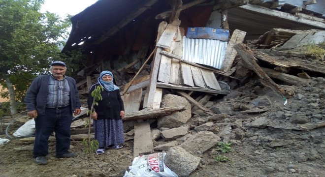 Olur ilçesi Taşgeçit Mahallesinde ikamet eden yaşlı çiftin evleri sabaha karşı çöktü.