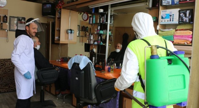 Aşkale’de berberler dezenfekte edildi