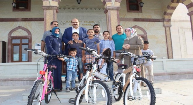 Aziziye Belediye Başkanı Muhammed Cevdet Orhan, Cimilli Aile Külliyesi'nde Kur’an-ı Kerim okumayı öğrenen çocuklara bisiklet hediye etti.
