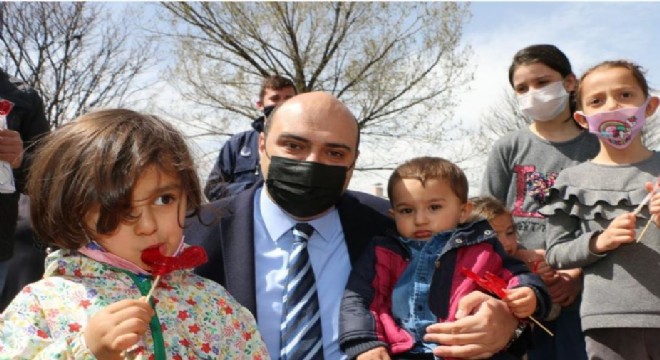 Aziziye Belediyesi, 23 Nisan’da küçük başkan olarak koltuğa oturttuğu miniğin talimatını yerine getirerek Aziziye İlçesi sınırlarında bulunan çocuk parklarındaki ağaçlara şekerler astı. Ağaçlardaki şekerleri gören minikler şeker alabilmek için birbiriyle yarıştı.
