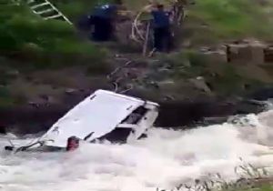Erzurum’un İspir ilçesinde bir otomobil, sürücüsünün direksiyon hakimiyeti kaybetmesi sonucu nehre uçtu.