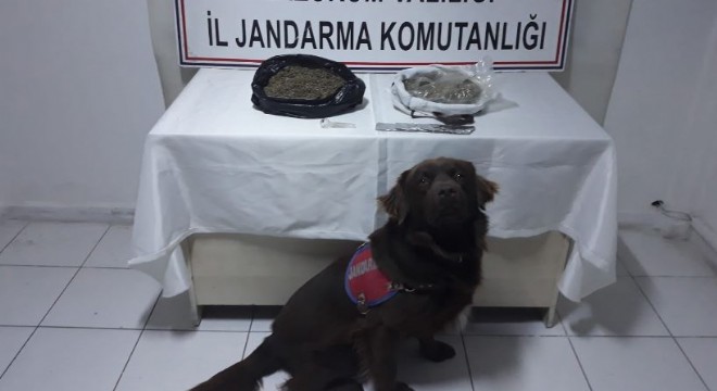 Erzurum’da jandarma ekiplerinin durdurup detektör köpek Çakıl’ın arama yaptığı otomobilin yedek lastiğinde 1 kilo 10 gram bonzai ele geçirildi.