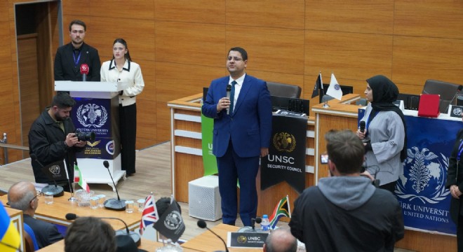 Üniversite öğrencilerinin dünyaya karşı bakış açılarını geliştirmek ve uygulama yaparak demokrasi ilkesini pekiştirmek amacıyla düzenlenen “Model Birleşmiş Milletler (MUN) Simülasyonu” konferansı, Erzurum Vali Yardımcısı Ahmet Özdemir’in katılımıyla Palandöken Belediyesi Meclis Salonunda gerçekleşti