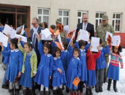 Karne dağıtım töreninin ardından kendilerini okulun karla kaplı bahçesine atan küçük öğrenciler, kartopu oynayarak tatilin tadını çıkarmaya başladılar.