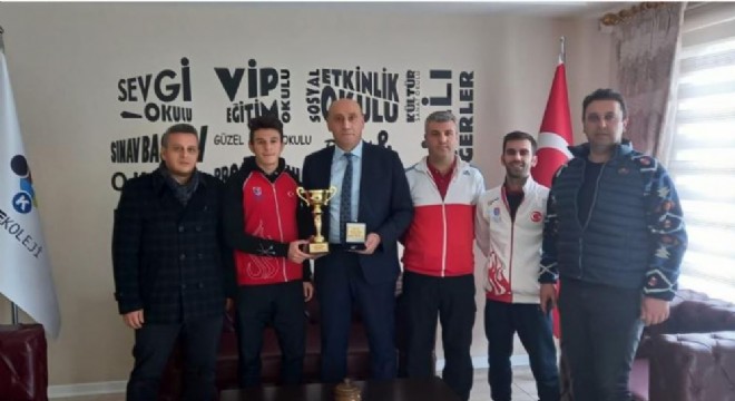 Ziyarette Özel Bilge Koleji Kurucusu ve Yönetim Kurulu Başkanı Abdullah Samancı ile sporcunun velisi Mustafa Akal da hazır bulundu.