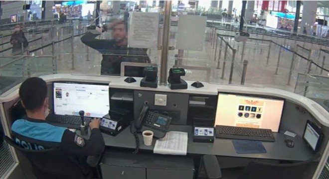 Terör örgütü PKK üyesi olduğu iddia edilen şüpheli, İstanbul Havalimanı'ndan başkasının pasaportu ile yurt dışına çıkmak isterken yakalandı. O anlar kameralara yansıdı.