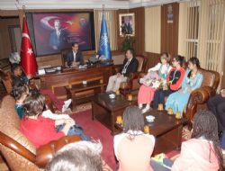 ERZURUM (İHA) - 11.Uluslararası Türkçe Olimpiyatları için Dünya'nın değişik ülkelerinden Erzurum'a gelen öğrenciler, Palandöken Belediye Başkanı Orhan Bulutları makamında ziyaret etti.