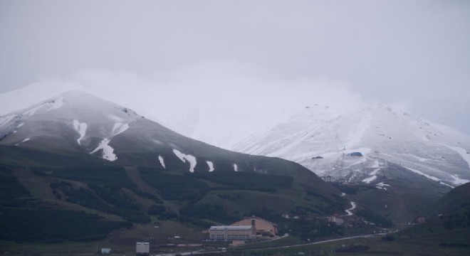 Erzurum'da Palandöken Dağı'nın yüksek kesimleri mayıs ayı olmasına rağmen beyaza büründü.Erzurum’un dünyaya ve Türkiye’ye açılan önemli kapılarından birisi olan 3 bin 125 rakımlı Palandöken Dağı'nın zirvesinde kar eksik olmuyor. Birkaç gündür kent merkezinde etkili olan yağışlı hava, Palandöken’de kendini zaman zaman kar yağışı olarak gösteriyor. Dünden bu yana devam eden yoğun yağış, sezonu kapatan Palandöken Kayak Merkezi’nin üst kısımlarını karla kapattı.