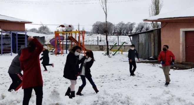 Kar yağışı Erzincan’ın Çayırlı ilçesinde küçük öğrenciler için neşe kaynağı oldu. Teneffüse okul bahçesine çıkan çocuklar kartopu oynayarak eğlenceli vakit geçirdi.