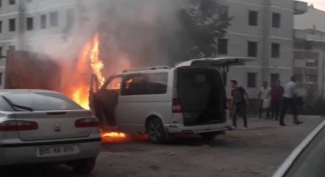 Park halindeki araç alev alev yandı