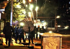 Saldırıyı protesto etmek için yolu trafiğe kapatan gruba polis müdahale etti. Polise saldıran gruba TOMA’larla tazyikli su sıkılarak müdahalede bulunuldu. Yaklaşık bir saat süren gerginlik, gruptakilerin ara sokaklara kaçmaları ve parti binasına girmeleriyle sona erdi.