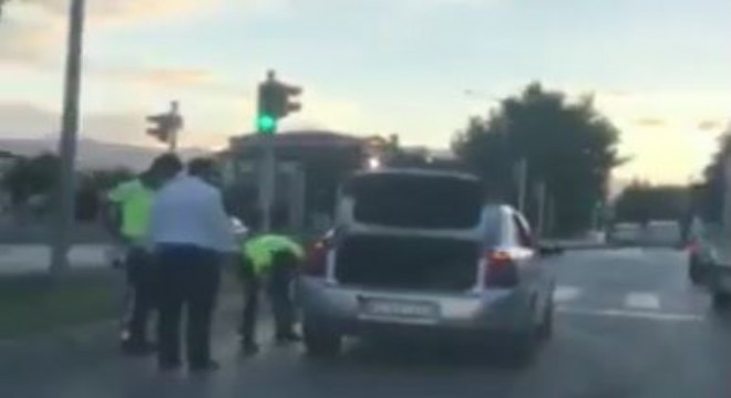Erzincan’da seyir halindeyken otomobilinin lastiği patlayan sürücünün yardımına trafik polisleri yetişti.