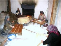 ERZURUM (İHA) - Erzurumlu kadınlar Ramazan ayı öncesi hazırlıklara hız verdi. Erzurum’un Tortum ilçesinde kadınlar yaklaşan Ramazan ayı nedeniyle hazırlıklarını sürdürüyor. Ramazan ayında börek için yufka açan bayanlar mahalle aralarında toplanarak imece usulü ile birbirlerine yufka, erişte, börek ve çeşitli hamur işleri açıyorlar.