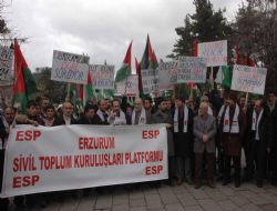 Erzurum STP üyeleri, İsrail'e tepki için dün öğle namazını müteakiben Lala Paşa Camii avlusunda toplandı. İsrail aleyhine pankart açıp slogan atan topluluk adına STP Erzurum İl Temsilcisi Mehmet Dindi, bir basın açıklaması okudu. İsrail kınanarak, "Filistine yol açık" adıyla başlatılan uluslararası yardım konvoyuna destekte bulunmak için toplandıklarını ifade eden Dindi, "Siyonist İsrail yönetiminin Gazze halkına karşı giriştiği saldırının yaraları hâla sarılamadı" dedi.