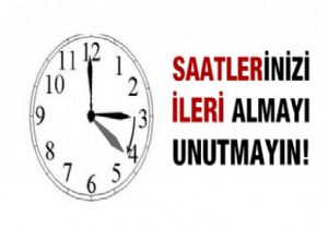 Saatler bu gece 1 saat ileri alınacak.  Gün ışığından daha fazla yararlanmak amacıyla bütün yurtta saatler, 31 Mart 2014 Pazartesi günü saat 03.00’ten itibaren bir saat ileri alınacak. 26 Ekim 2014 Pazar günü saat 04.00’ten itibaren ise bir saat geri alınacak.