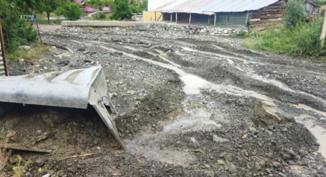 Oltu ilçesinde etkili olan sağanak yağış nedeniyle bir mahalle yolu ulaşıma kapanırken tarım alanları da zarar gördü.