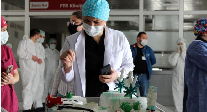 Sağlık çalışanlarına korona temalı pasta sürprizi