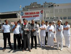 Türk Sağlık-Sen Üniversite Şube Başkanı Bülent Çakmur ve yaklaşık 50 hastane çalışanı başhekimlik girişi önünde basın açıklaması yaparak uygulamaya tepki gösterdiler.