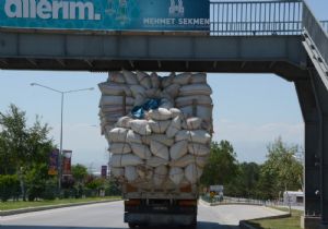 Zaman zaman sağ tarafa doğru esneyen yük özellikle trafik sinyalizasyonlarının olduğu yerde korku ve paniğe neden oldu. Çat yolundan gelerek üniversite kavşağına doğru seyreden kamyon, E-80 karayolu üzerindeki üst geçidi kıl payı sıyırdı.
