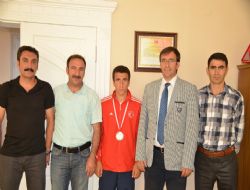 ERZURUM (İHA) - Türkiye Atletizm Federasyonu’nun ev sahipliğinde 3 Ağustos 2013 tarihinde Edirne’de yapılan Yıldızlar Atletizm Balkan Şampiyonası’nda 3 bin metre yarışlarında birinci olan Erzurumlu Milli atlet Enis Korkmaz, Erzurum’un gururu oldu. Milli atlet, Erzurum Gençlik Hizmetleri ve Spor İl Müdürü Fatih Çintimar’ı ziyaret etti. Ziyarette Atletizm İl Temsilcisi Zeyit Palabıyık ile Antrenörleri Yavuz Bayram, Orhan Güngör ve Nihat Bayburt’ta hazır bulundu. Edirne’de yapılan yarışlarda başarılı bir performans geçirererek, erkeklerde Türkiye adına altın madalya kazanan iki atletten biri olan Enis Korkmaz’ı tebrik eden Erzurum Gençlik Hizmetleri ve Spor İl Müdürü Fatih Çintimar, şampiyon atletin bundan sonraki yarışlarda da şampiyonluk kürsüsüne çıkacağına inandığını söyledi. Balkan Şampiyonu Atlet Enis Korkmaz ise başarıyı hocalarının taktiklerini iyi uygulamanın sonucunda yakaladığını söyledi.