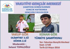 Olimpiyat üçüncüsü olan ve Rio Olimpiyat Oyunları'na katılım hakkı kazanan Yakup Gör ve Milli Güreşçi Kenan Gör Gençlik Haftası kapsamında Yakutiye Gençlik Merkezin'nde gençlerle bir araya gelecek.