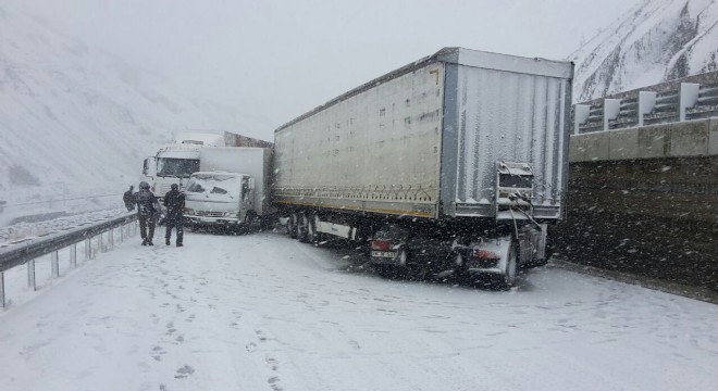 Erzincan-Erzurum karayolunda meydana gelen zincirleme trafik kazasında 3 araç hasar gördü.