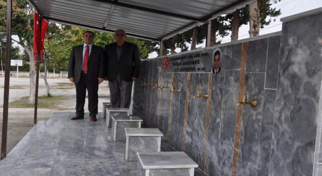 Yeşilköy Mahallesi’nde yaşayan şehit babası Bayram Akböbek, 2015 yılında Erzurum’un Şenkaya ilçesi kırsalında bölücü teröristlere karşı yürütülen operasyonlar sırasında çıkan çatışmada şehit düşen oğlu Jandarma Uzman Onbaşı Doğan Akgöbek’in ismini ve aziz hatıralarını yaşatmak için eğitim gördüğü Akdeniz Ortaokulu'nun bahçesine hayrat çeşmesi yaptırdı.