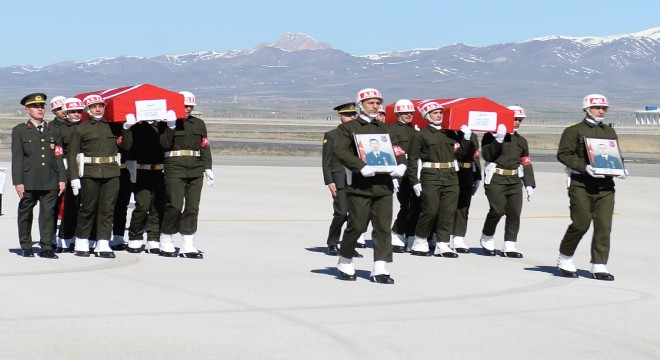 Kağızman ilçesi kırsalında dün mayın patlaması sonucu şehit düşen Jandarma Uzman Çavuşlar Hüseyin Emre Kul ve Tekin Tekin’in naaşları sabah saatlerinde Hava Meydan Komutanlığına getirildi. Burada düzenlenen törene Erzurum Valisi Seyfettin Azizoğlu, Büyükşehir Belediye Başkan vekili Mevlüt Doğan, askeri erkan ve şehitlerin yakınları katıldı.