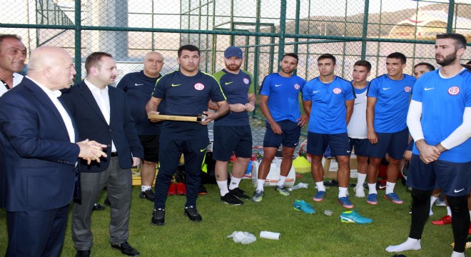 Kamp çalışmalarını 9 gündür Erzurum-Palandöken'de sürdüren Antalyaspor’u, Büyükşehir Belediye Başkanı Mehmet Sekmen ziyaret etti. Kırmızı-beyazlı takımın antrenmanı sonrası sahaya gelen Erzurum Büyükşehir Belediye Başkanı Mehmet Sekmen'i, Teknik Direktör Bülent Korkmaz karşıladı. Süper Lig'de çok önemli bir geçmişe sahip olan Antalyaspor'u Erzurum'da ağırlamaktan mutluluk ve onur duyduklarını belirten Başkan Sekmen, "Erzurumumuz, sezon başı kamp yapmak için mükemmel bir iklim ve ortama sahip. Buradaki kampın faydalarını lig mücadelesinde görmenizi ve başarılı olmanızı diliyorum. Yolunuz her zaman açık olsun" dedi. Erzurum Büyükşehir Belediye Başkanı Mehmet Sekmen, kırmızı-beyazlı ekibe Erzurum yöresine özel bir tepsi tatlı ikramında bulundu.
