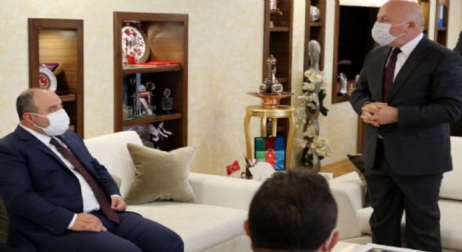Sanayi ve Teknoloji Bakanı Mustafa Varank, bir dizi temas ve açılışlarda bulunmak üzere geldiği Erzurum’da Büyükşehir Belediyesi’ni de ziyaret etti. Başkan Mehmet Sekmen’in makamında konuk ettiği Bakan Varank, Erzurum’da bulunuyor olmaktan duyduğu memnuniyeti ifade ederken, şehrin sanayi ve teknoloji alanında kaydettiği gelişimlerden de mutlu olduğunu dile getirdi.