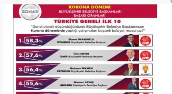 Araştırmada, virüsle mücadele çalışmalarında büyükşehir belediye başkanlarının ortaya koyduğu performans değerlendirilirken, sonuçlar AK Parti ve CHP’li belediye başkanları şeklinde ayrı ayrı ele alındı.