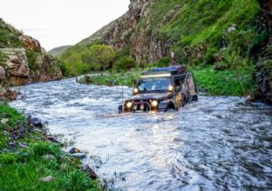 Serhat illeri rotasının son gününde Off Road ekibi, tarihi İpekyolu parkurunu tamamladı. 120 kilometrelik parkur üzerinde bulunan Ani Antik Kenti’ndeki bütün tarihi kalıntıları tek tek gezen ekip, daha sonra Susuz Şelalesi’ni gitti. Şelalenin aktığı Cılavuz Deresi’ndeki zorlu etap Off Road’çılara heyecanlı anlar yaşattı. Suyun karşısına geçmeye çalışan bazı araçlar derinlik nedeniyle dereyi geçemedi. Derenin ortasında kalan araçlar halat yardımıyla sudan çıkarılabildi. Cılavuz Deresi’ni güçlükle geçebilen ekip, yorgunluğunu Susuz Şelalesi’ndeki günbatımını izleyerek atmaya çalıştı. Şelaledeki günbatımının keyfini çıkaran ekip, akşam saatlerinde kent merkezine döndü. Yapılan değerlendirme toplantısında konuşan İzci Team ekibinden Okan Tozun, bölge illerinin doğa turizmi açısından önemli bir potansiyele sahip olduğunu söyledi. Tozun, “Birçok kültüre ev sahipliği yapan ve doğası ile insanı büyüleyen bir coğrafyada ilk kez üç gün boyunca yolculuk yaptık. Parkurlar, çok heyecanlı ve etkileyiciydi. Off Road’çıların buradaki rotaları görmelerini tavsiye ediyorum” diye konuştu. Etkinlik sonunda katılımcılara, Ağrı Dağları’nın arasından geçen Off Road aracının bulunduğu maket hediye edildi.