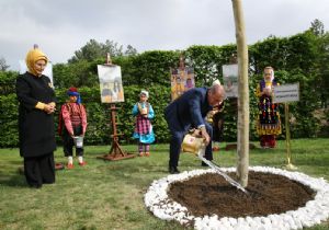 Cumhurbaşkanlığı Külliyesi’nde gerçekleşen kabul, Külliye’nin bahçesinde çınar ağacı dikimi ile başladı. Eşi Emine Erdoğan’ın da kendisine eşlik ettiği törende Cumhurbaşkanı Erdoğan, 29 farklı ülkeden gelen çocuklarla birlikte çınar ağacı dikti. Cumhurbaşkanı Erdoğan çocuklarla birlikte Tuna’dan (Macaristan) Misisipi’ye (ABD), Ganj’dan (Hindistan) Fuji’ye, dünyanın 7 ayrı nehrinden getirilen suları, dikilen çınar ağacına ‘can suyu’ olarak tabir edilen ilk suyunu verdi.