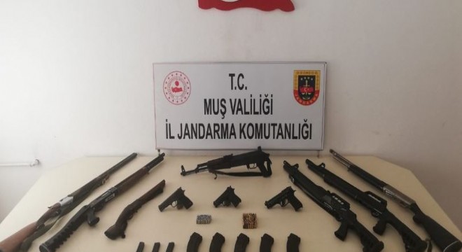 Muş Valiliğinden yapılan açıklamada, İl Jandarma Komutanlığınca 1-8 Eylül 2020 tarihleri arasında silah ve mühimmat kaçakçılığı, uyuşturucu madde imal ve ticareti ile tarihi eser kaçakçılığı kapsamında icra edilen operasyonlarda; 1 adet kalaşnikof piyade tüfeği, 7 adet tabanca, 6 adet av tüfeği, 253 adet tabanca fişeği, 164 adet av tüfeği kartuşu, 6 adet kalaşnikof piyade tüfeği şarjörü, 29 adet kalaşnikof piyade tüfeği fişeği, 14 adet tabanca şarjörü, 18 gram toz esrar, 10 gram metamfetamin, 5 adet mezar taşının ele geçirildiği kaydedildi.