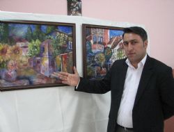 DURSUN MURAT AYDIN(İHA) –Oltu Yasin Haşimoğlu İlköğretim Okulu Resim Öğretmeni Volkan Şimşek ilk kişisel resim sergisini açtı