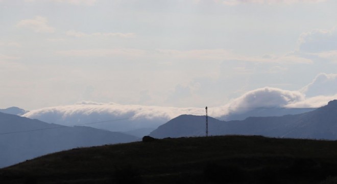 Olur ilçesi, Kivi Mahallesi'nde bulunan Kivi Dağı'nda yoğun sis bulutları, etkileyici bir şelale görüntüsü oluşturdu.