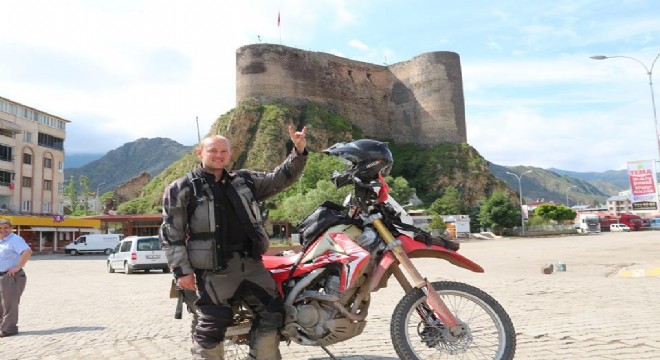 Motosikletiyle birlikte binlerce kilometre yol kat ederek Oltu’ya kadar gelen gezgin Busfy, Oltu Kalesini ziyaret edemeyince büyük hayal kırıklığı yaşadı.