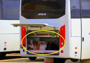 Midibüsün bagajına girerek saatlerce şekerleme yapan bir şoför günün fotoğraf karesini oluşturdu. Etrafından bihaber sürücü uyumanın tadını çıkardı.