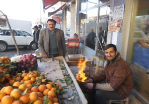 Manavlık yapan Emre Tanrıverdi, “Kış ayında içeride soba yakamıyoruz meyve ve sebzelerimiz bozuluyor. Biz de dışarıya koyduğumuz meyve ve sebze tezgahının hemen yanın da ateş yakarak üşümemeye ve satış yapmaya çalışıyoruz.” dedi.